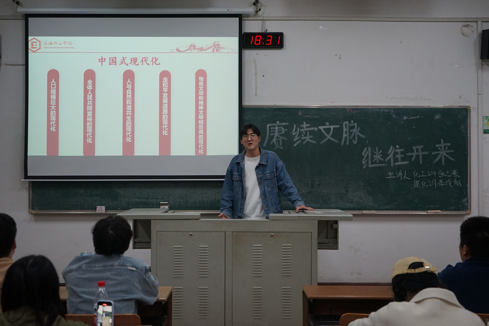李成旭向同學們介紹了近現(xiàn)代中國現(xiàn)代化進程與歷史、改革開放后中國現(xiàn)代化問題的提出,使同學們明確了黨的十八大以后中國式現(xiàn)代化的發(fā)展目標。張志豪從傳統(tǒng)節(jié)日、六大建筑派系、傳統(tǒng)文化遺產著手,帶領同學領略了傳統(tǒng)文化的魅力,同時強調了傳承傳統(tǒng)文化的重要性和必要性。望我院的學生通過此次講座能夠結合所學專業(yè),利用所學知識,推動傳統(tǒng)文化的傳承與創(chuàng)新,堅定文化自信,為中國式現(xiàn)代化的推進作出獨屬于大學生的特別貢獻。
