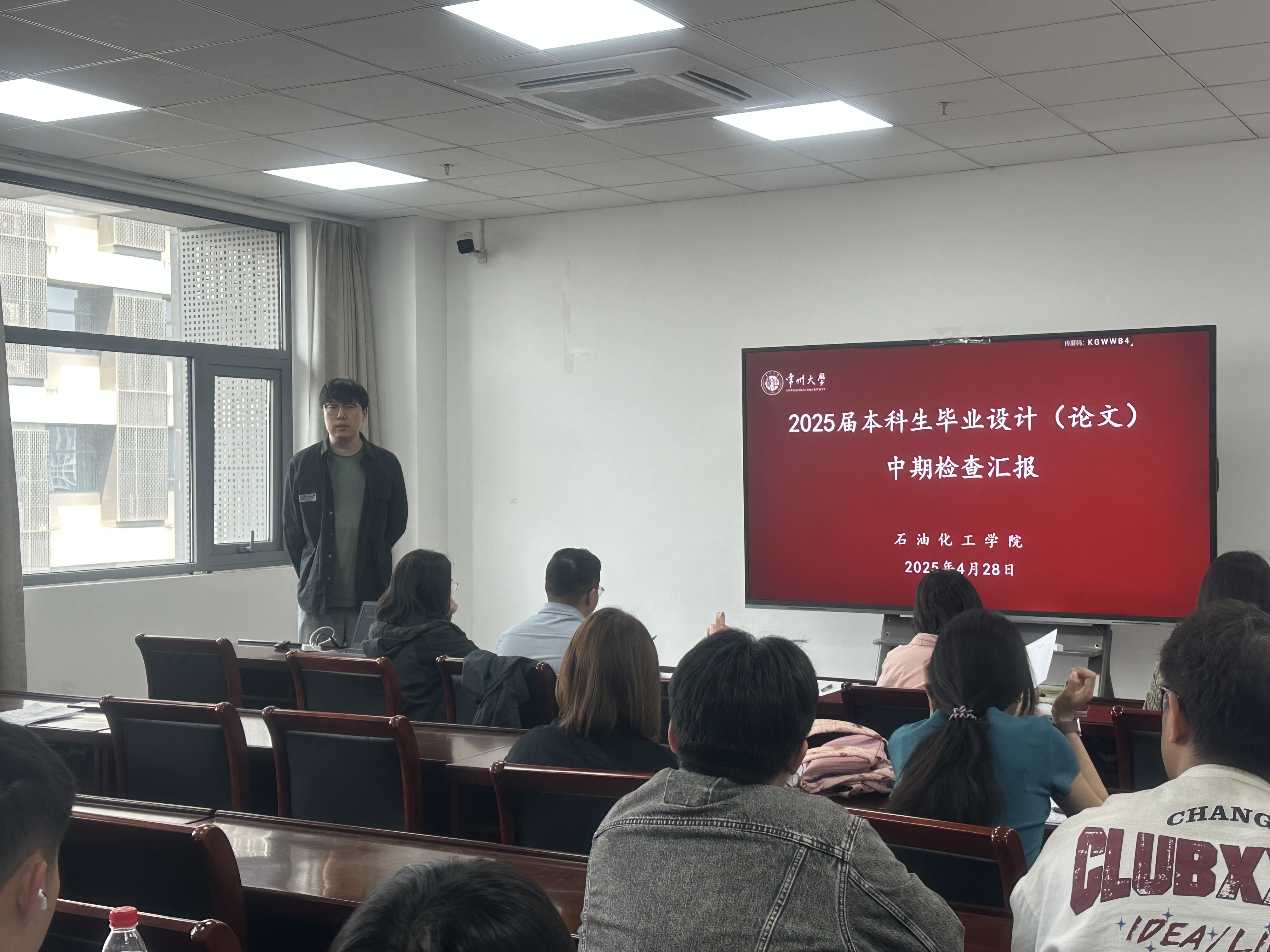 為進(jìn)一步提高本科生畢業(yè)設(shè)計(jì)(論文)質(zhì)量,規(guī)范人才培養(yǎng)過程考核,2025年4月28日,我院在測(cè)試樓B617組織開展2025屆本科畢業(yè)設(shè)計(jì)(論文)中期檢查匯報(bào)答辯工作,學(xué)院24名畢業(yè)生代表和5位評(píng)委老師參加了匯報(bào)會(huì),會(huì)議由化工教研室主任石劍老師主持。