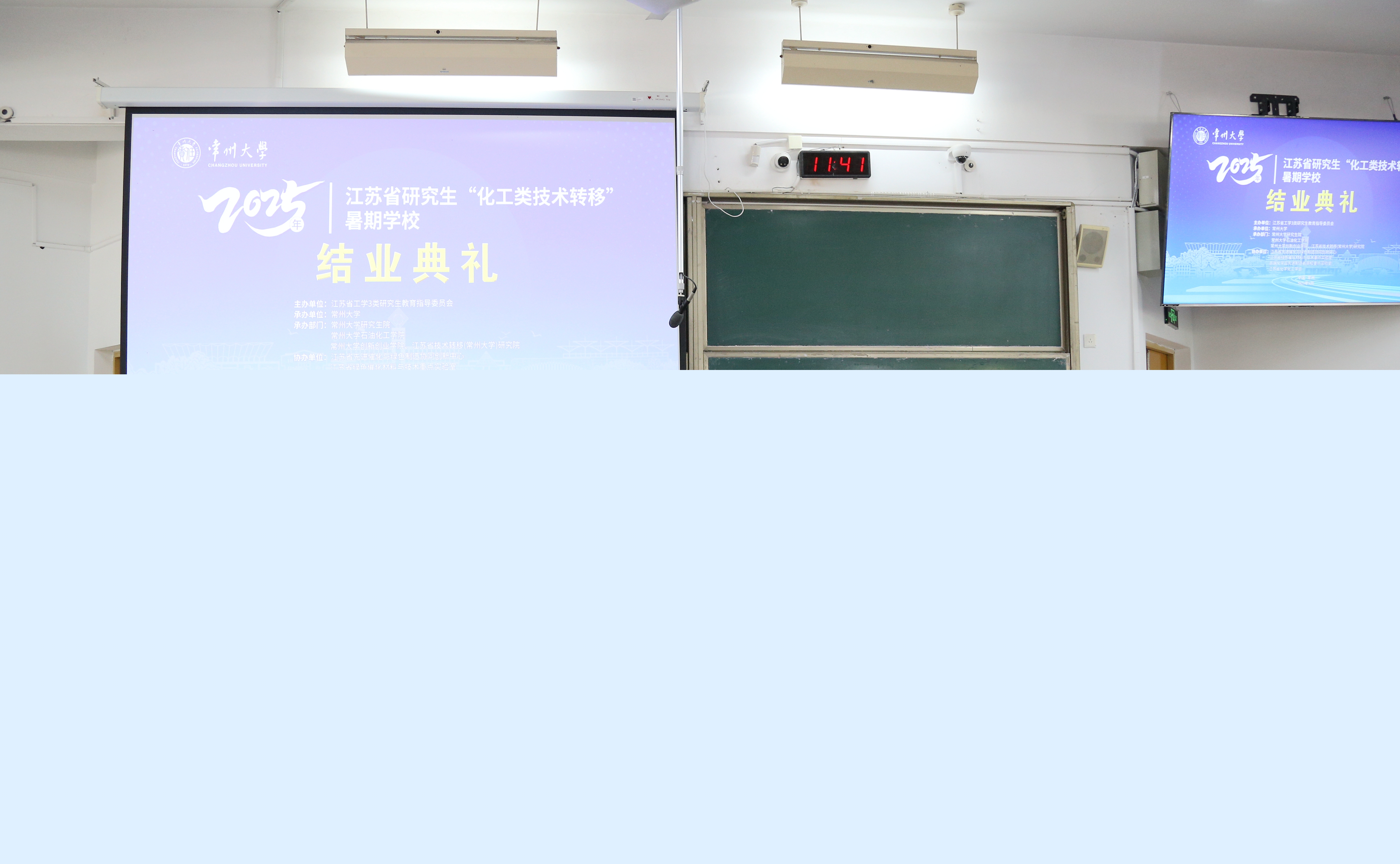 2025年8月29日上午,江蘇省研究生“化工類(lèi)技術(shù)轉(zhuǎn)移”暑期學(xué)校圓滿(mǎn)落下帷幕,我院副院長(zhǎng)劉英杰、江蘇省技術(shù)轉(zhuǎn)移(常州大學(xué))研究院副院長(zhǎng)姚娟和全體學(xué)員出席了結(jié)業(yè)典禮。本次暑期學(xué)校歷時(shí)6天,吸引了來(lái)自省內(nèi)外十余所高校的百余名優(yōu)秀研究生及教師參與。