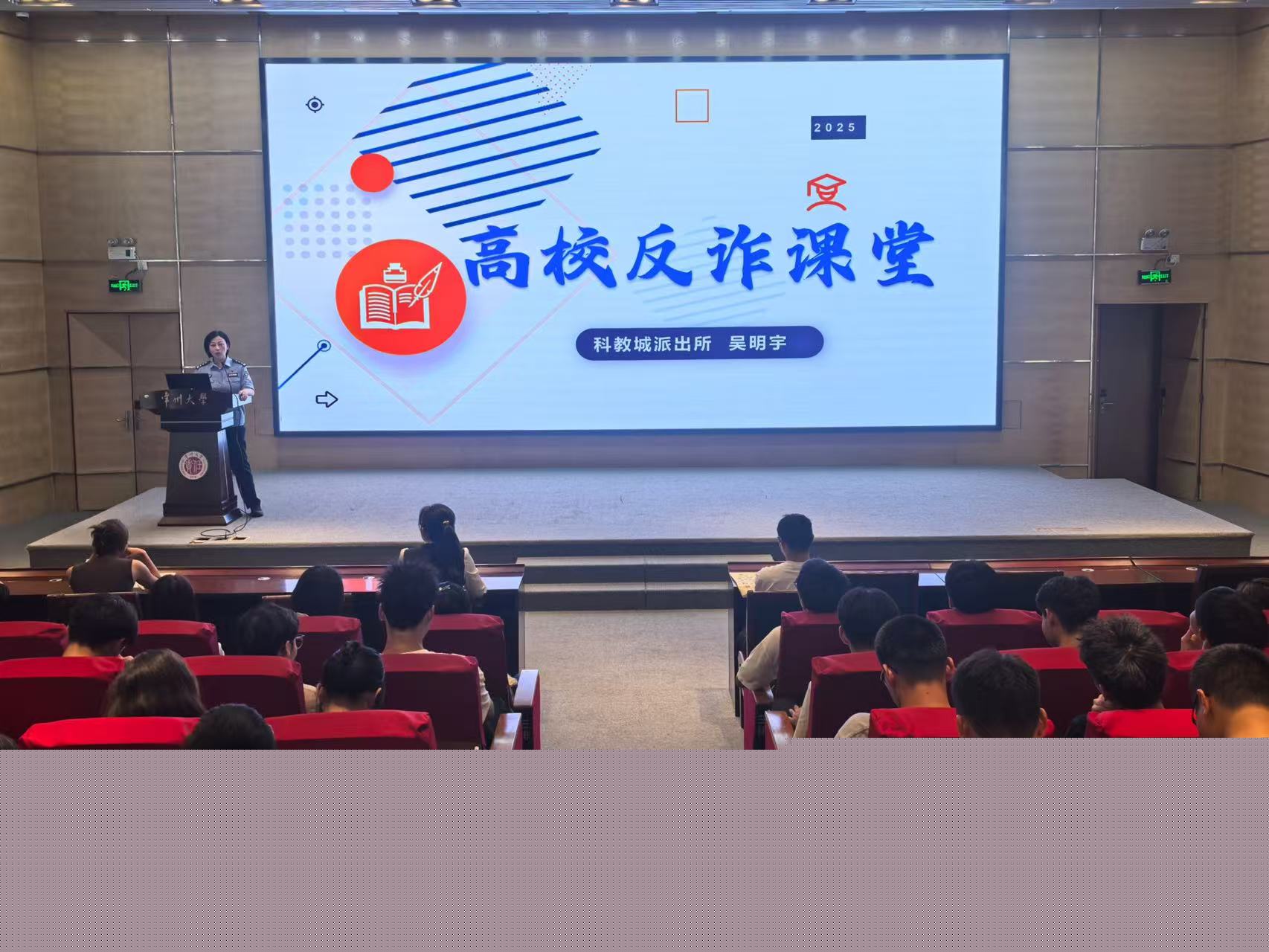 為進一步提高研究生對各類詐騙的鑒別能力和自我防范意識,我院于9月15日下午18:00,邀請常州市公安局科教城派出所指導員、常州大學駐校民警、常州大學安保處處長助理吳明宇在文彰樓報告廳舉辦了反詐宣傳講座。