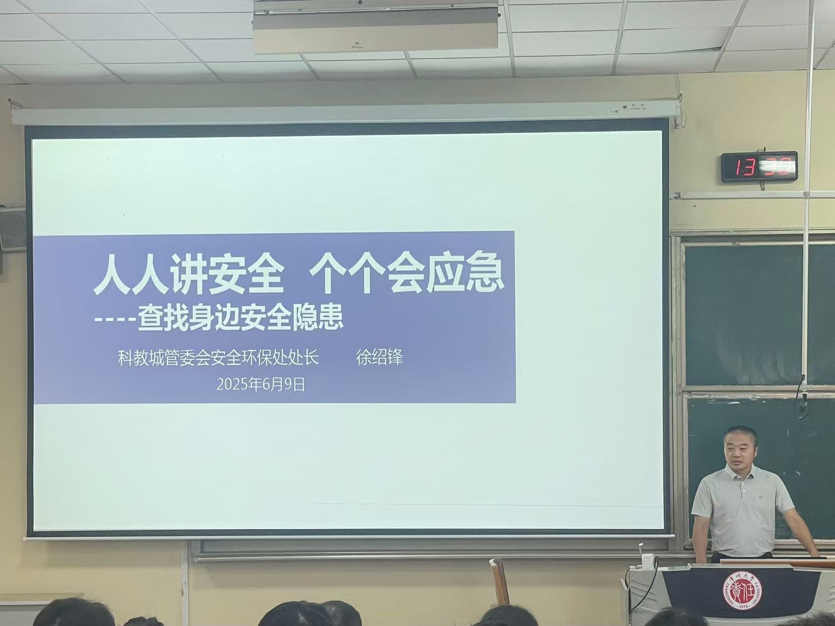 會議伊始,科教城管理委員會安全環(huán)保處處長徐紹鋒為2025級研究生新生做《高校實驗室安全生產(chǎn)》專題講座。他通過聚焦各地高校發(fā)生的化學泄漏、設(shè)備操作失誤等具體案例,深入剖析事故根源與經(jīng)驗教訓,重點講解石化實驗室常見的試劑儲存隱患、高壓設(shè)備風險、應(yīng)急處置流程等內(nèi)容,反復告誡新生需時刻保持警惕,將 “防患于未然” 的安全意識貫穿科研學習全過程。