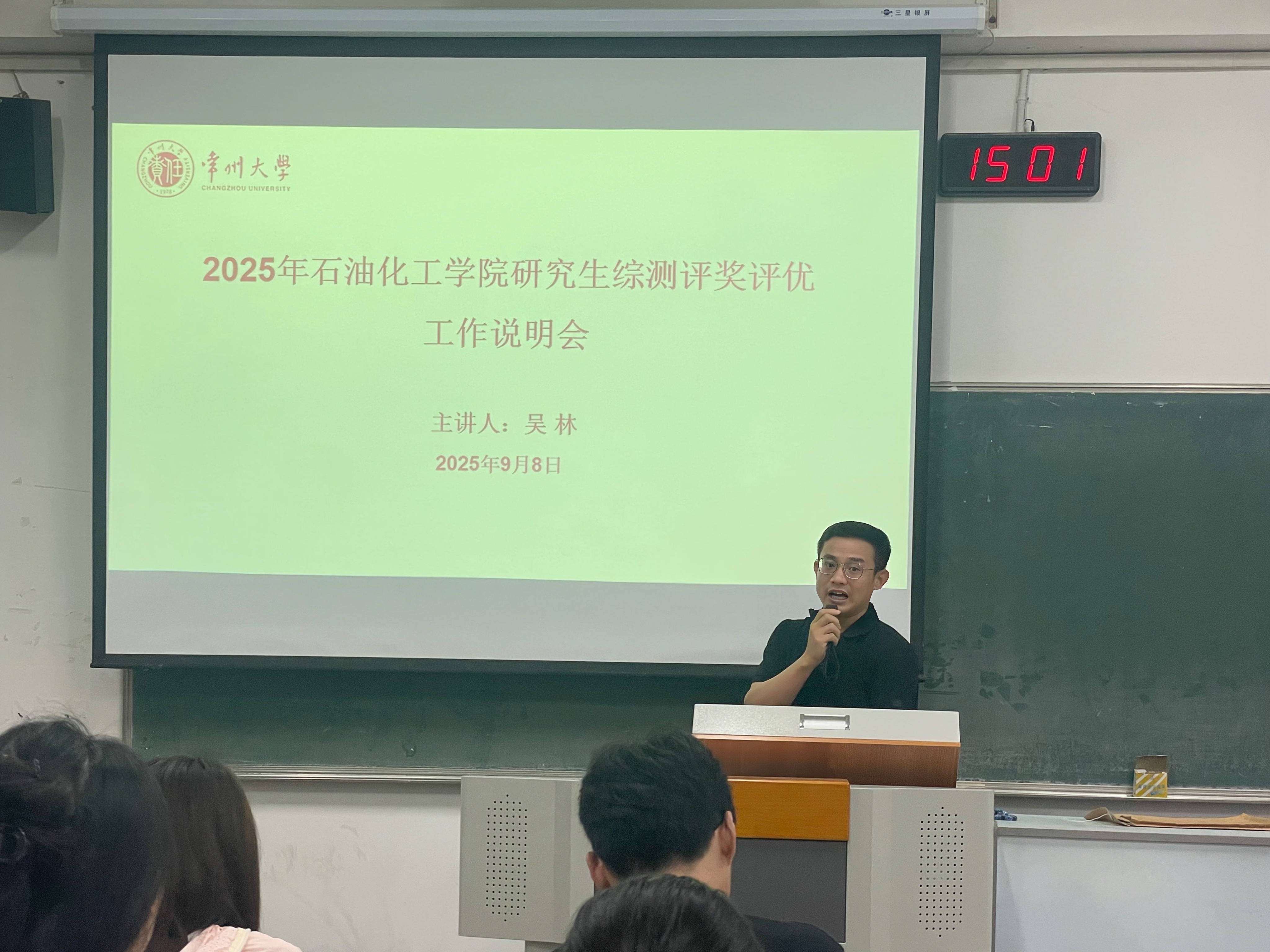 最后,研究生秘書陳科向大家介紹了各專業(yè)教學工作安排、導師研究生雙選工作、選課的具體要求和注意事項,幫助新生盡快熟悉本專業(yè)培養(yǎng)計劃和要求、科學規(guī)劃學習生活。