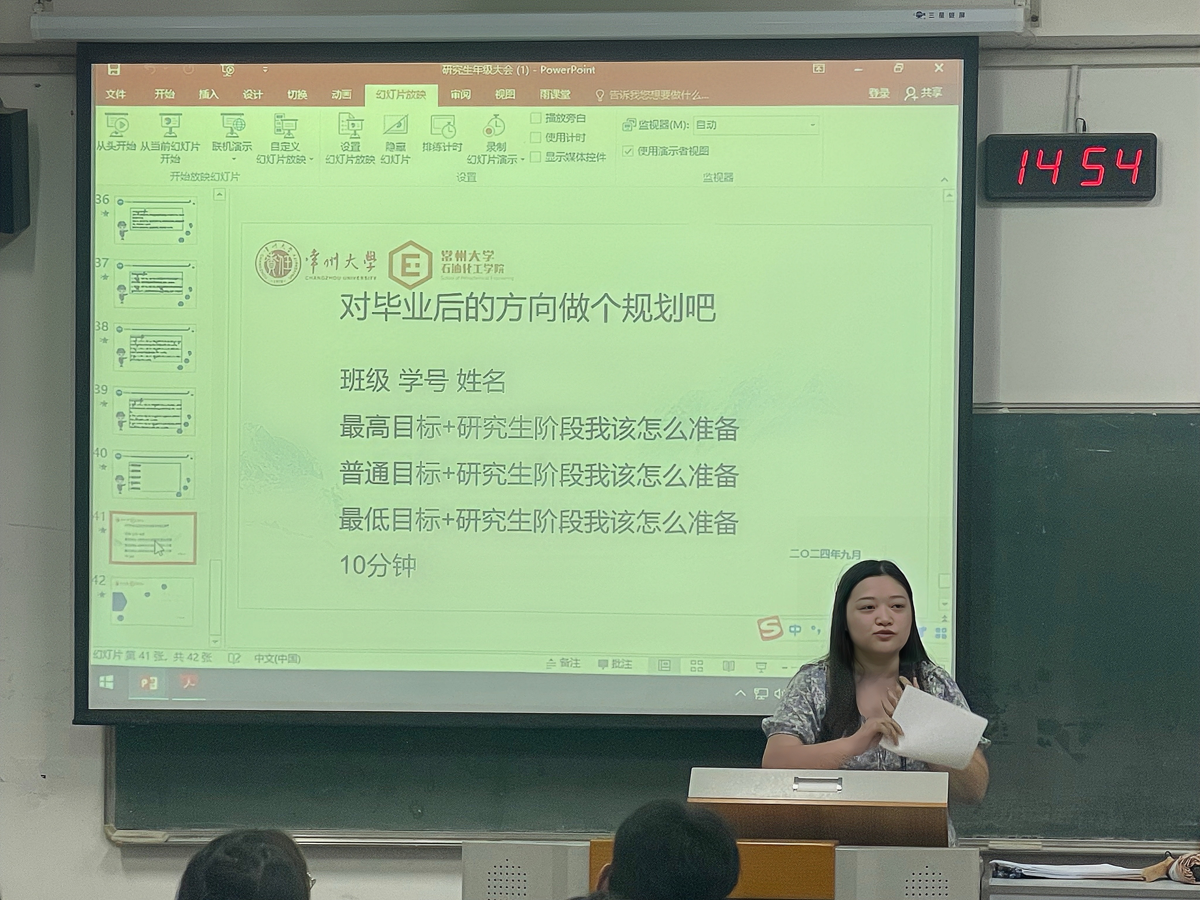 會上,趙彩霞、劉爽簡要介紹了自身工作內(nèi)容,并圍繞 “常州城市文化”、“常州大學校史”、“學院部門及其職能”、“學習科研與職業(yè)規(guī)劃”、“規(guī)章制度與評獎評優(yōu)”、“安全教育”六大核心板塊進行講解。隨后,研究生輔導員吳林就研究生綜合素質(zhì)評價與獎助學金評定的相關(guān)政策辦法進行了詳細解讀,幫助同學們明晰了未來努力的方向。接下來,學院研究生會主席呂燁松對研會各部門職能作了系統(tǒng)介紹,并鼓勵研究生新生踴躍報名加入,在實踐中鍛煉自我、服務(wù)同學、貢獻力量。最后,趙彩霞、劉爽分別對大會內(nèi)容進行總結(jié),希望同學們盡快適應(yīng)新環(huán)境、新身份,科學規(guī)劃研究生生活,積極參與學術(shù)研究與校園活動,全面提升綜合素養(yǎng)。