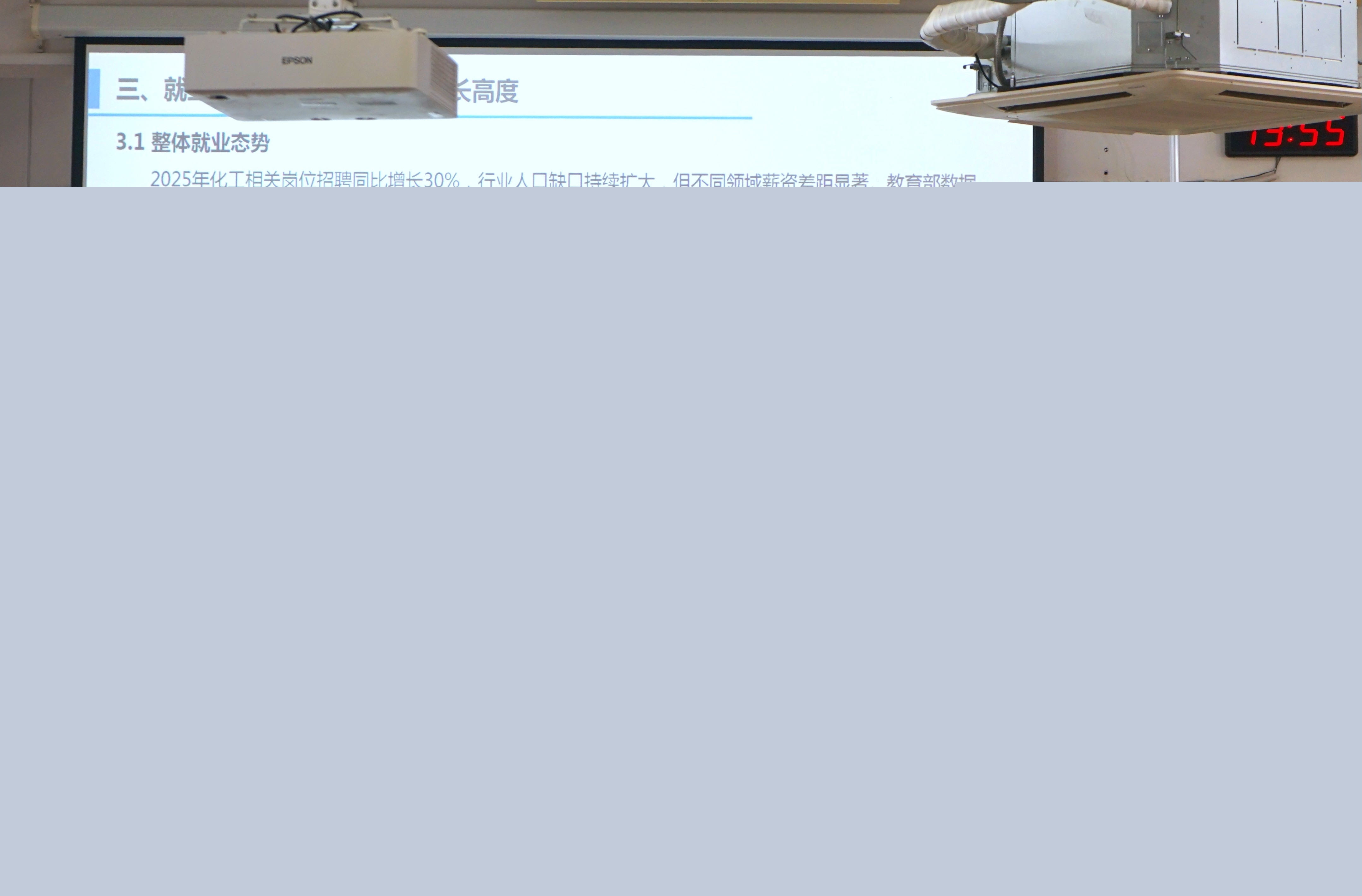 本次講座圍繞石化企業(yè)的招聘要求、行業(yè)發(fā)展現(xiàn)狀、職業(yè)發(fā)展建議等方面展開(kāi)。三位校友首先為同學(xué)們解析了當(dāng)前石化行業(yè)的招聘趨勢(shì)、招聘流程和具體要求,并結(jié)合他們所在企業(yè)和相關(guān)領(lǐng)域的詳實(shí)產(chǎn)業(yè)數(shù)據(jù),深入剖析了化工相關(guān)產(chǎn)業(yè)的發(fā)展現(xiàn)狀。此外,校友們結(jié)合他們的求學(xué)和工作經(jīng)歷,給學(xué)弟學(xué)妹們分析了化工相關(guān)專業(yè)的就業(yè)現(xiàn)狀和職業(yè)發(fā)展前景,幫助同學(xué)們厘清發(fā)展路徑、做好職業(yè)規(guī)劃。最后,他們寄語(yǔ)學(xué)弟學(xué)妹們要筑牢專業(yè)知識(shí)基礎(chǔ),務(wù)必學(xué)好專業(yè)課程;要拓展視野,鼓勵(lì)大家積極參與科研項(xiàng)目、學(xué)科競(jìng)賽和社會(huì)實(shí)踐,提升解決復(fù)雜問(wèn)題的綜合能力;還要錘煉品格,培養(yǎng)吃苦耐勞、勇于擔(dān)當(dāng)?shù)穆殬I(yè)精神,并保持終身學(xué)習(xí)的習(xí)慣,以應(yīng)對(duì)行業(yè)的快速變革。他們的寄語(yǔ)情真意切,引發(fā)了在場(chǎng)同學(xué)的深深共鳴。