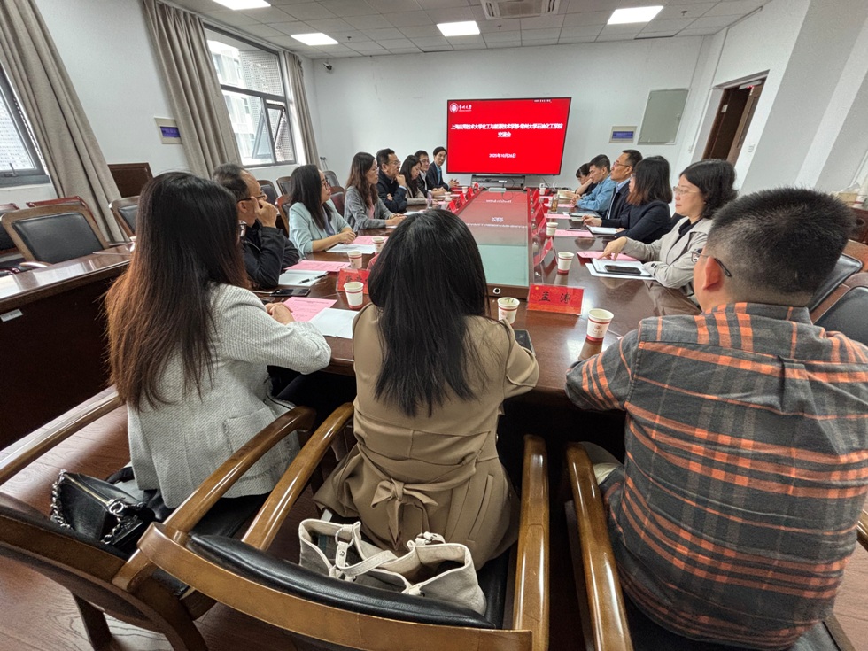 10月26日下午,上海應(yīng)用技術(shù)大學(xué)化工與能源技術(shù)學(xué)部主任韓生、黨委書記陳靜一行來我院交流,黨委書記業(yè)緒華、院長(zhǎng)劉平、黨委副書記劉國仕、副院長(zhǎng)黃薇等參加交流,會(huì)議由劉平主持。