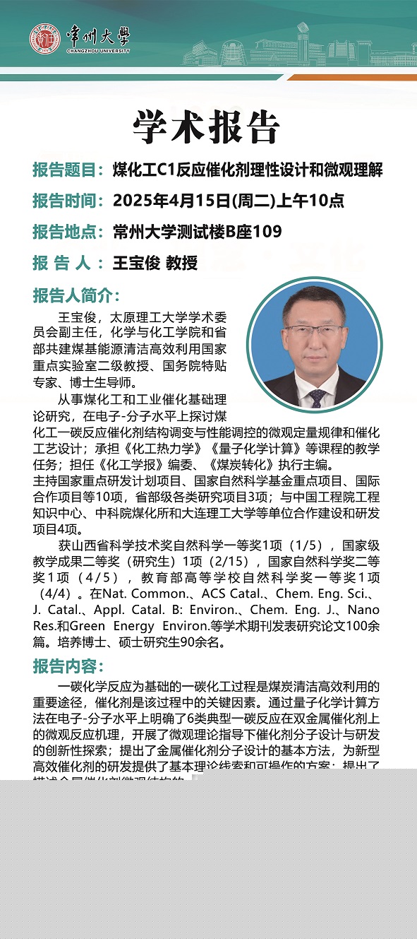 【學術報告】4月15日學術報告—王寶俊教授 太原理工大學