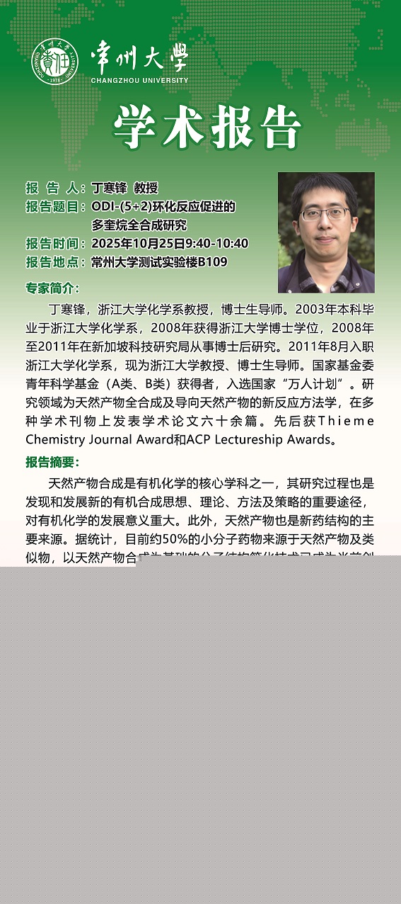 【學術(shù)報告】10月25日功能雜環(huán)研究院學術(shù)報告——丁寒鋒教授 浙江大學 顧振華教授 中國科學技術(shù)大學 |