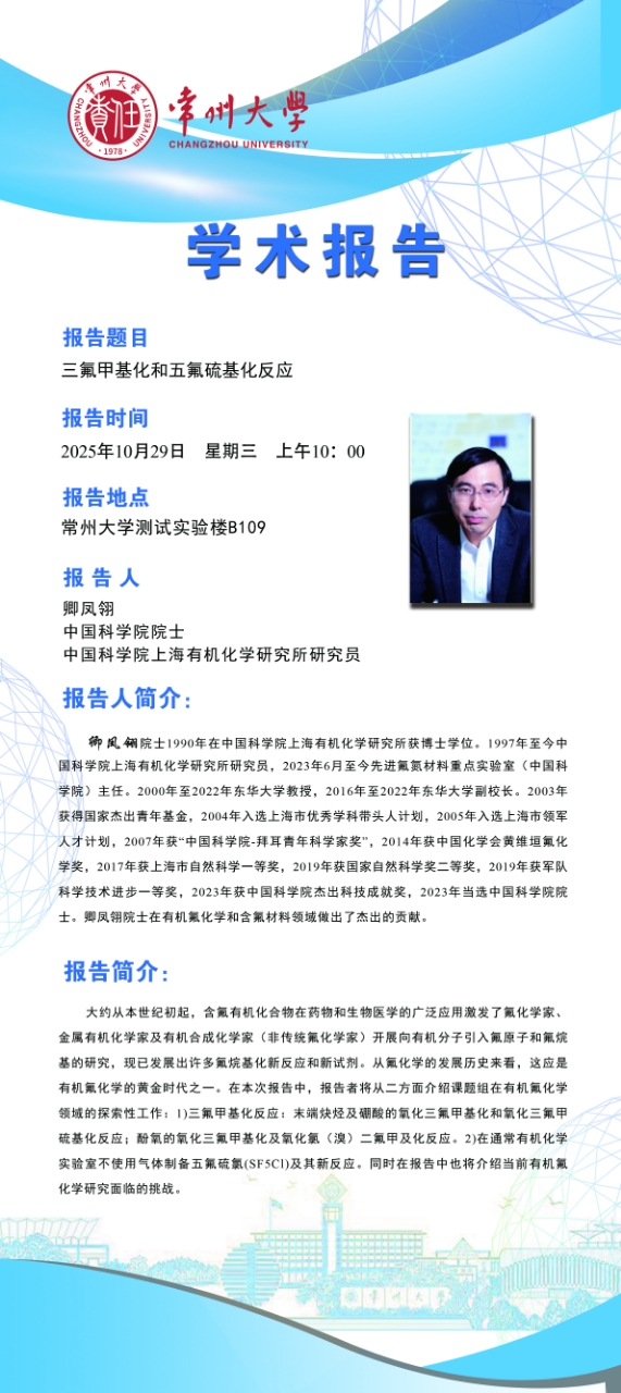 | 【學(xué)術(shù)報(bào)告】10月29日自然與合成有機(jī)化學(xué)研究院學(xué)術(shù)報(bào)告——卿鳳翎院士 中國(guó)科學(xué)院 |