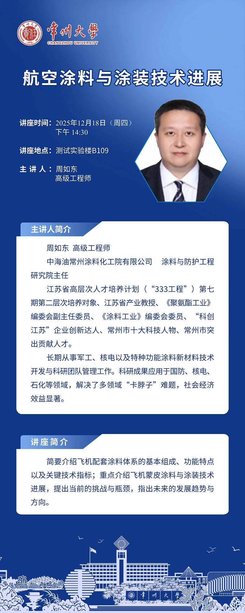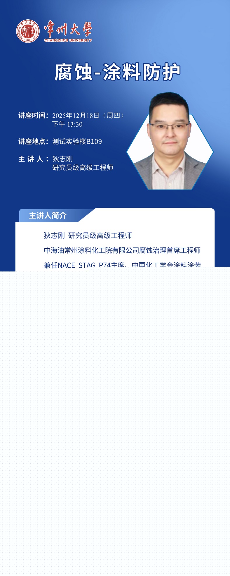 | 【學(xué)術(shù)報(bào)告】12月18日學(xué)術(shù)報(bào)告——中海油常州涂料化工院 狄志剛 研究員級(jí)高級(jí)工程師、周如東 高級(jí)工程師 |