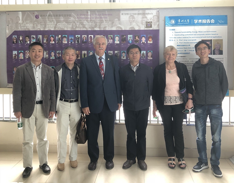 On May 6th, 2019, Prof. Jerzy Leszczynski and Prof. Danuta Leszczynka from Jacksonville State University visited our school and gave academic reports. In the report “Towards Sustainability: Energy, Water and Environment”, Prof Leszczynski talked about the important role and prospects of computational chemistry in the research of advanced material as a solution to global crisis. In Prof. Leszczynka’s report “Constructing customized non-enzymatic sensors based on nano-size carbon material for environmental and medical applications”, the basic concept of nano-particles and its applications on environment protection have been introduced. After the reports, two professors had an academic discussion with the audiences, and also discussed the possible areas and topics of cooperation between the two sides.